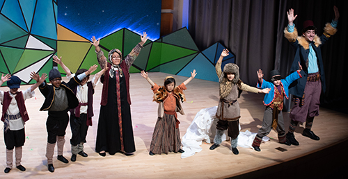 Lucy Moses School student Valentina Derolph has been very busy learning songs and practicing her lines for this year’s Summer Musical Workshop (SMTW) performances in Merkin Hall. A seasoned SMTW veteran at age seven-and-a-half, she played a villager in the musical “Appelmando’s Dream” last year; this year she took the stage as a hunter’s child in “The Little Snow Boy” (see photo below). One of seven original musicals addressing this year’s theme of “Transformation,” it tells the charming story of a child made out of snow who comes to life.