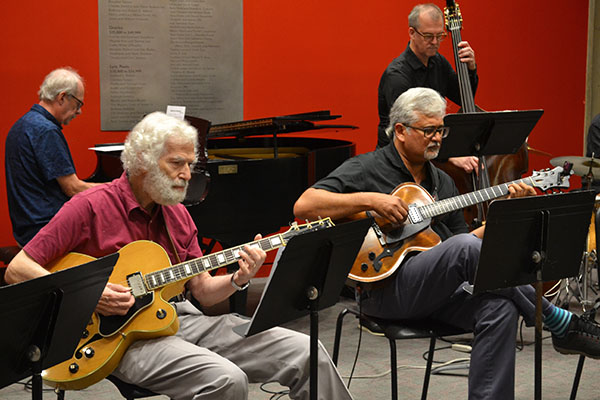This class explores jazz harmony as it relates to the guitar. Students will learn to construct chord voicings, play chord progressions and "comp" on jazz standards (play accompaniment arrangements). Additionally, students will study a variety of intros and endings useful in an ensemble setting, as well as arrangements for solo (unaccompanied) guitar.