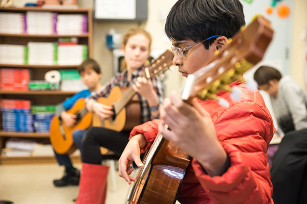 Students learn basic techniques, chords, and chord progressions in a group environment, setting a foundation for playing all styles of music with the guitar. These small classes are an excellent way to learn beginning guitar in a friendly, dynamic setting. Learn basic techniques, chords and chord progressions in a group environment. You will study different playing techniques and genres, including classical, folk, and popular music. Improvisational techniques will be introduced. Please bring an acoustic or classical guitar to class.