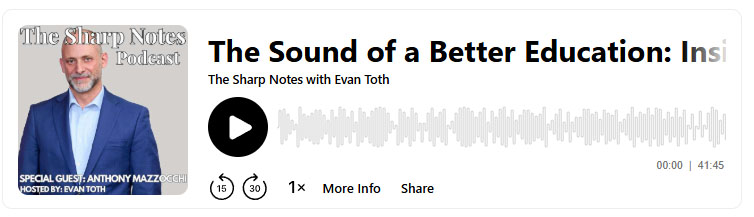 In conversation with Sharp Notes podcast host Evan Toth, Kaufman Music Center President & CEO Anthony Mazzocchi explains why music in the classroom is so essential, and how it can transform lives. Watch or listen now